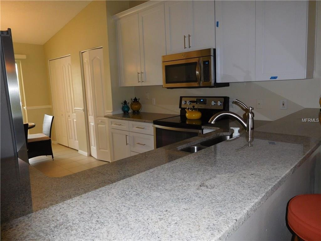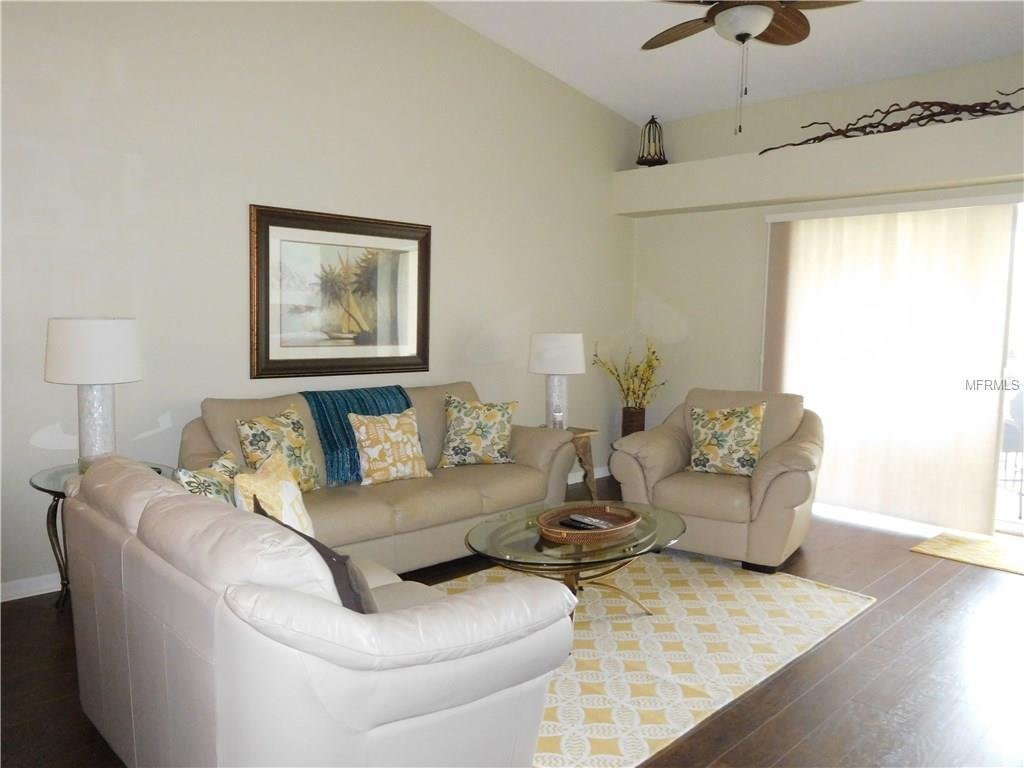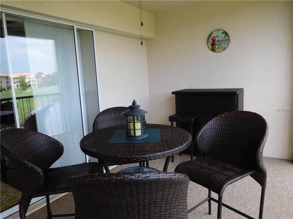 One of the prettiest views in Stoneybrook overlooking the 3rd hole on the golf course. This is special!! This second floor “Barrington” model veranda offers over 1400 sq. ft. of open living space, two bedrooms, two full baths, plus den/office, and is newly furnished and decorated, flat screen TVs, internet access, there is new engineered wood flooring in living and dining area and den. There is a screened entry and rear lanai, a one car detached garage and is conveniently located just a short distance from the heated community pool and tennis courts. The clubhouse is something to be proud of and features casual and formal dining, a grill room, piano lounge and meeting rooms, there is a well equipped fitness center, library, a large heated pool and spa. The community is conveniently located next to the Legacy Bike and Walking Trail and is minutes away from the famed sugary sand beaches of Siesta Key, shops and fine restaurants. The golf membership can be transfered for $250 for the duration of your stay. RENTED NOV THROUGH APRIL, 2020.